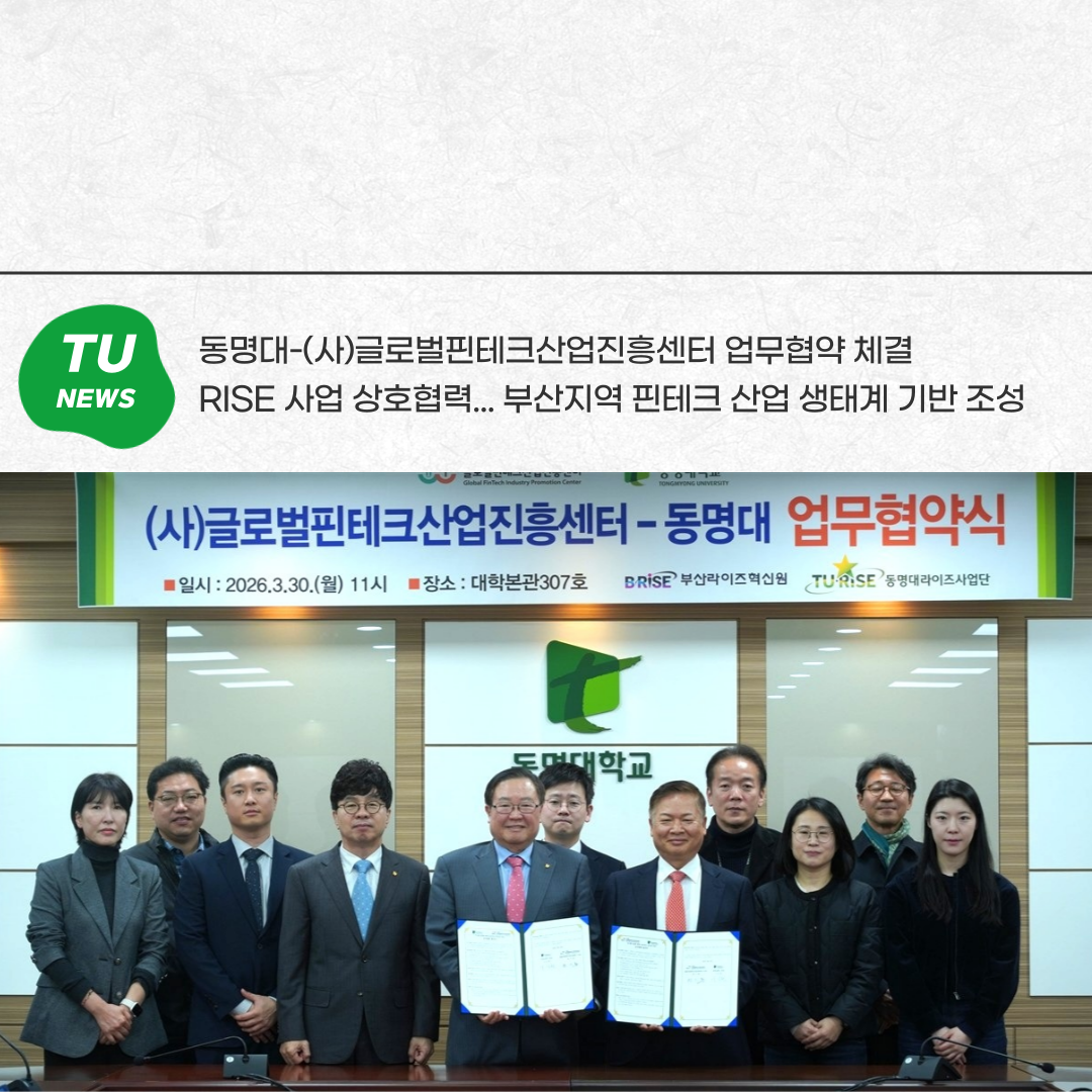 동명대-(사)글로벌핀테크산업진흥센터 업무협약 체결