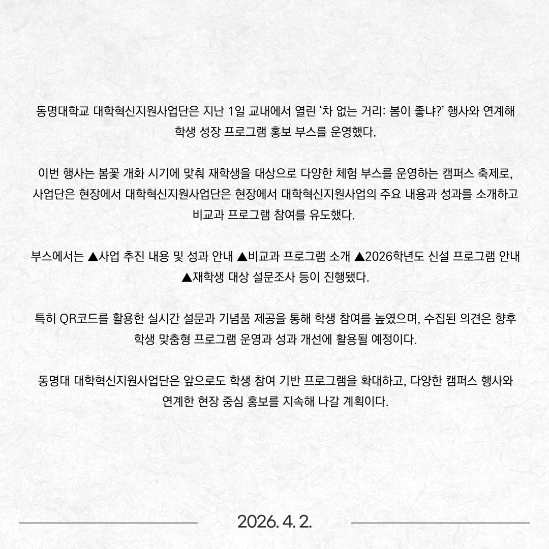동명대, ‘차 없는 거리 축제’서 학생 성장 프로그램 홍보